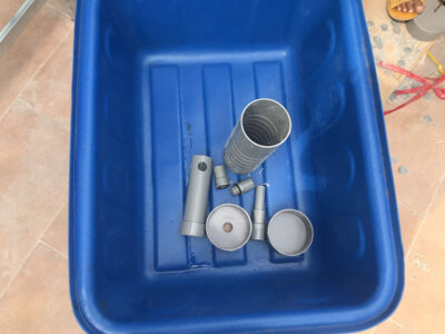 Bước 1: khoan 1 lỗ ϕ27 chính tâm 1 nắp đậy ϕ114, dùng 1 co răng trong 27 và 1 co răng ngoài 27 cố định nắp vào khay rau