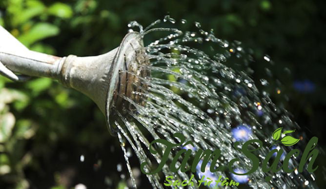 Gieo hạt giống với mật độ vừa phải, sau đó tưới phun sương lại trên hạt giống rau mầm.